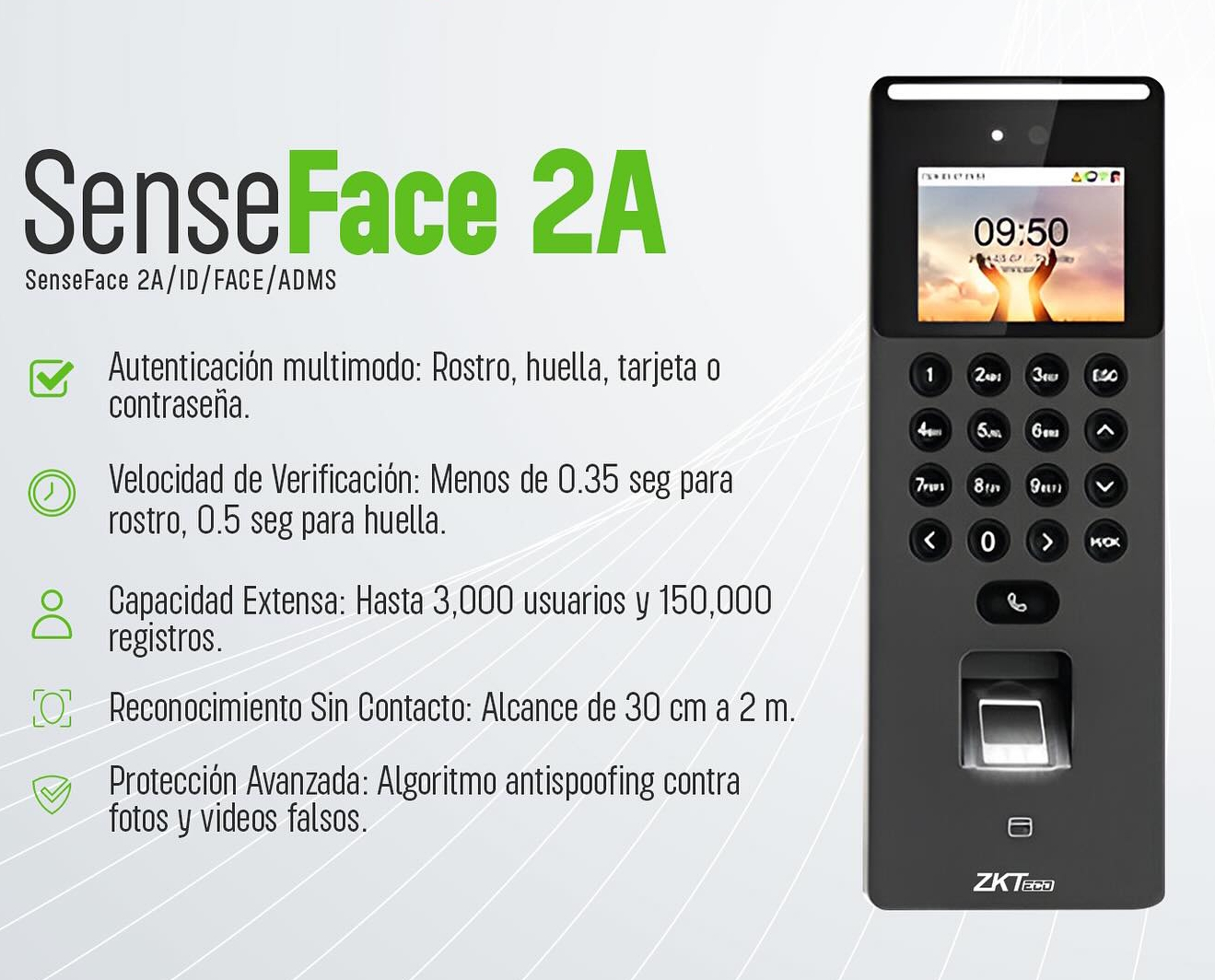 Máy chấm công ZK Teco SenseFace 2A (vân tay, khuôn mặt, thẻ từ)